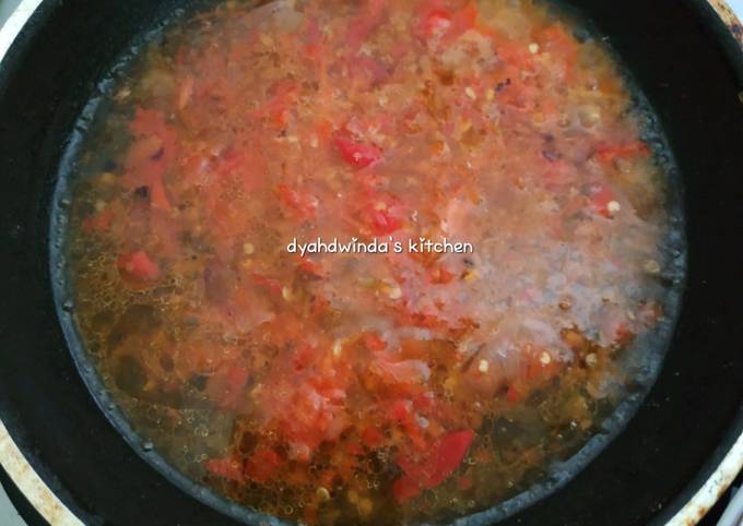 - Panaskan migor, tumis sambal hingga harum. Lalu tambahkan air sisa rebusan tadi, garam dan gula. Cek rasa dan sajikan. Cocok untuk sambal makanan berkuah..