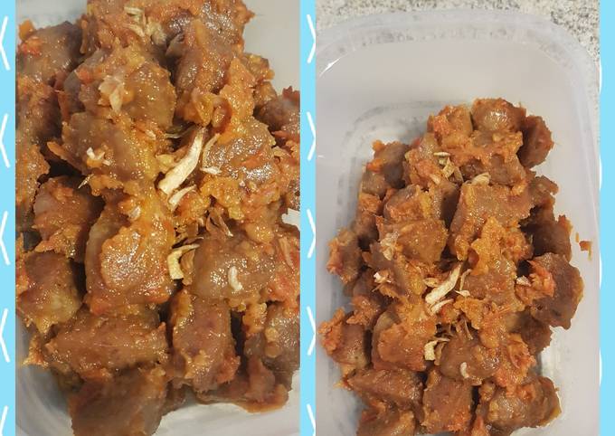 - Tumis bumbu halus dengan minyak goreng bersama trasi,garam dan gula merah,setelah berubah warna dan keluar aroma,masukkan bakso yg sudah di goreng,aduk rata sampai bumbu meresap,tes rasa dan matikan api.NB:garamnya jng banyak2 krn pentol bakso biasanya sudah di bumbui garam.