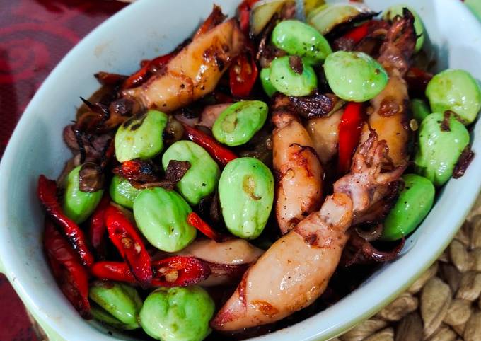 - Lalu masukkan pete dan cumi. tambahkan gula merah. koreksi rasa..